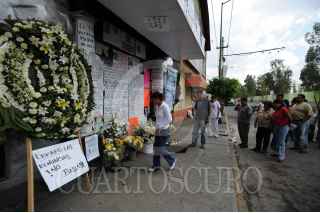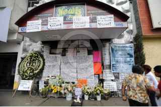 MÉXICO, D.F., 19JUNIO2009.- A cumplirse un año de la tragedia ocurrida en la discoteca News Divine familiares y amigos acudieron a las puertas de la discoteca a dejar flores y pancartas para recordad a los jóvenes que fallecieron esa tarde FOTO: LUIS CARBAYO/CUARTOSCURO.COM