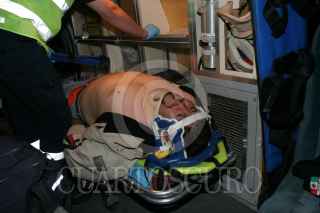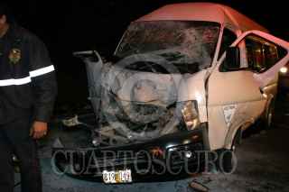 MÉXICO, D.F., 20JUNIO2009.- En el kilómetro 24 de la carretera federal México-Toluca, una camioneta modelo Urba se impactó en la parte trasera de un autobús son saldo de dos personas lesionadas que fueron rescatados por los paramédicos de la Cruz Roja y del ERUM. FOTO: LUZ ACEVEDO/CUARTOSCURO.COM