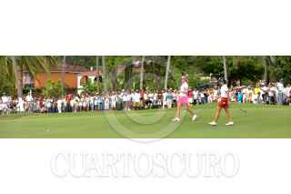 IXTAPA, ZIHUATANEJO 20JUNIO2009.- La mexicana Lorena Ochoa vencio 15-3 a la estadounidense Paula Creamer, durante el Banamex Skins Ixtapa 2009, celebrado esta mañana en el campo de Golf Palma Real, donde disputó una bolsa de 180 mil dólares, de los cuales la tapatía se adjudicó 150 mil. FOTO: CUARTOSCURO.COM