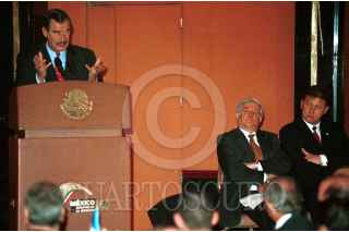 En su primer acto como titular de la Secretaría de Economía, Fernando Canales Clariond, fue "desconocido" por el presidente de México, Vicente Fox Quesada, quien lo presentó ante empresarios europeos como Fernández Clariond.FOTO: Antonio González/CUARTOSCURO.COM