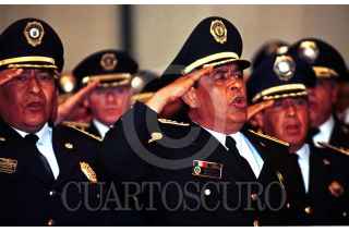 Policias de diferentes corporaciones y delegaciones recibieron hoy ascensos por parte de la Secretaria de Seguridad Pública capitalina. El evento fue presidido por Marcelo Ebrard, quien pidió a los legisladores mejores armas jurídica para poner a los delincuentes reincidentes en su lugar, y no "dejarlos libres luego de dar unos cuantos pesos". FOTO: Juan Pablo Zamora/CUARTOSCURO.COM
