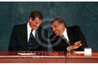 El presidente Vicente Fox, presentó la credencial única de Identificación con Clave Unica de Registro de Población (CURP), en el salón Adolfo Lopez Mateos de la residencia oficial de los Pinos, estuvo acompañado por Francisco Barrio, secretario de la Contraloria y Santiago Creel, secretario de Gobernación.FOTO: Oswaldo Ramírez/CUARTOSCURO.COM