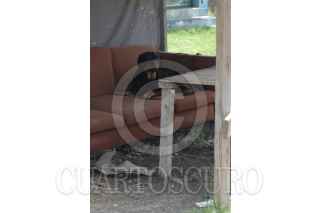 CHALCO, EDO. DE MÉXICO, 24JUNIO2009.- Un perro descansa sobre este sillón para cubrirse del sol y descansar en la colonia Jardines de Chalco. FOTO: MARIO NULO/CUARTOSCURO.COM
