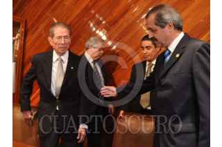 MÉXICO, D.F., 25JUNIO2009.- Jesús Kumate, exsecretario de salud y José Ángel Cordova Villalobos, secretario de Salud durante la presentación del libro "Metanfetaminas, todo lo que los padres deben saber" de los Centros de Integración Juvenil. FOTO: EDUARDO MORALES/CUARTOSCURO.COM
