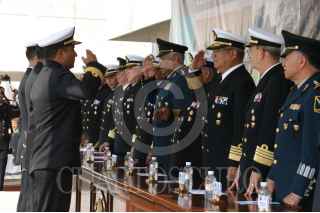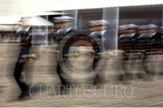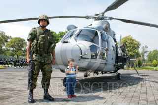 MÉXICO, D.F., 25JUNIO2009.- Un soldado resguarda un Helicóptero de la Marina en las instalaciones del Centro de Estudios Superiores Navales durante la graduacion de 229 elementos de esta dependencia. FOTO: RICARDO CASTELAN/CUARTOSCURO.COM