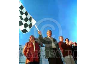 Andrés Manuel López Obrador, gobernador del Distrito Federal, dio el banderazo de salida a 80 camiones de transporte público, que a partir de hoy empezarán a dar servicio. FOTO: EUNICE ADORNO/CUARTOSCURO.COM