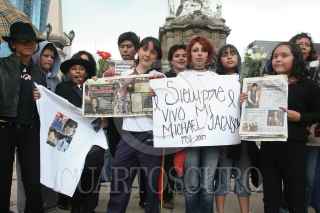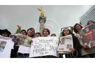 MÉXICO, D.F., 26JUNIO2009.- Fanaticos del rey del pop, Michael Jackson se reunieron la tardede hoy en las escalinatas del Ángel de la Independencia en memoria de su idolo que fallecio de un paro cardíaco el día de ayer en la ciudad de Los Angeles, California. FOTO: SAÚL LÓPEZ/CUARTOSCURO.COM
