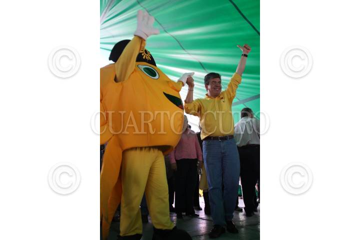MÉXICO D.F., 27 JUNIO2009.- Raúl Flores, candidato a jefe delegacional de Coyoacán y Alejandro Encinas, candidato a diputado federal, al iniciar un evento proselitista en la explanada del Jardín Hidalgo en el centro de dicha delegación. FOTO: MOISÉS PABLO/CUARTOSCURO.COM
