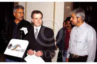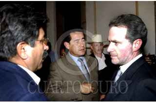 El secretario de Gobernación, Santiago Creel Miranda, se reunió esta tarde con las organizaciones campesinas que integran el Congreso Agrario Permanente y anunciaron que será el próximo jueves cuando se instalen las mesas de dialogo entre el Gobierno Federal y dichas organizaciones para lograr una acuerdo nacional para el campo. FOTO: Alberto Valdéz/CUARTOSCURO.COM