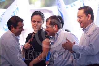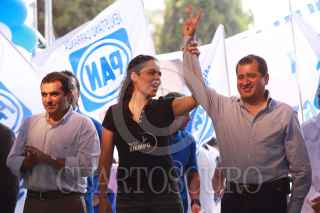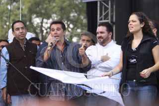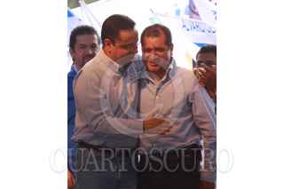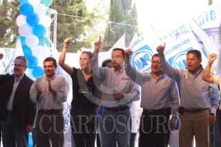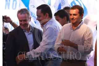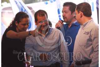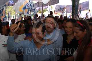 MÉXICO D.F., 28JUNIO2009.- Germán Martínez Cázares presidente nacional del PAN, El senador Santiago Creel, Ernesto Cordero titular de la SEDESOL durante el cierre de camapaña de Obdulio Avila para jefe delegacional de Coyoacan FOTO: SÁSHENKA GUTIÉRREZ/CUARTOSCURO.COM