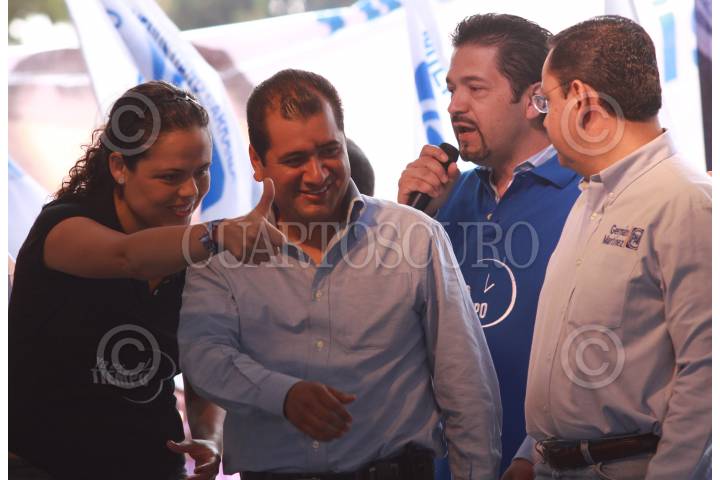 MÉXICO D.F., 28JUNIO2009.- Germán Martínez Cázares presidente nacional del PAN, El senador Santiago Creel, Ernesto Cordero titular de la SEDESOL durante el cierre de camapaña de Obdulio Avila para jefe delegacional de Coyoacan FOTO: SÁSHENKA GUTIÉRREZ/CUARTOSCURO.COM