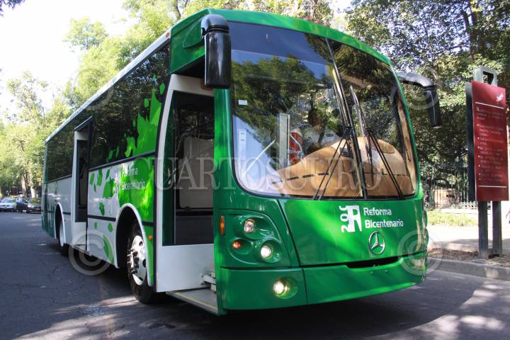 MÉXICO D.F., 29JUNIO2009.- El gobierno del Distrito Federal, presento esta mañana los autobuses ecológicos que circularán por el Corredor Reforma, en sustitución de 369 microbuses contaminantes, estos autobuses serán usados por alrededor de 175 mil personas y las unidades tendrán cámaras de monitoreo interno, GPS y pantalla de plasma con programación para los pasajeros. FOTO: RICARDO CASTELAN/CUARTOSCURO.COM