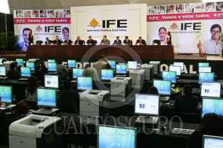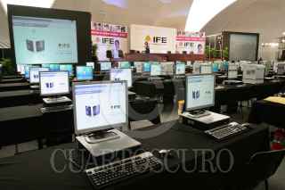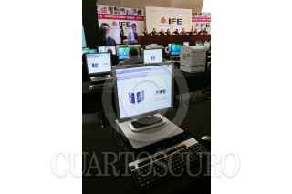 MÉXICO, D.F., 29JUNIO2009.- Además de la macro sala de prensa del Instituto Federal Electoral, que se inauguró esta mañana, se presentaron algunos modelos de las casillas que se usarán el próximo domingo 5 de julio, donde personas con discapacidad no tendrán dificultades en votar. FOTO: ISAAC ESQUIVEL/CUARTOSCURO.COM
