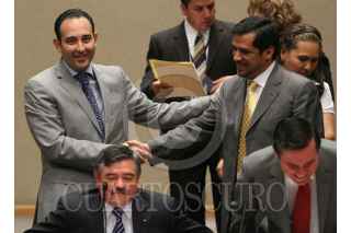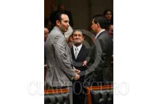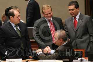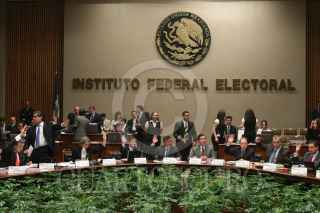 MÉXICO, D.F., 29JUNIO2009.- El senador Pablo Gómez, consejero del Poder Legislativo, y Rafael Hernández Estrada, representante del PRD ante el IFE, durante la sesión ordinaria del consejo general. FOTO: ISAAC ESQUIVEL/CUARTOSCURO.COM