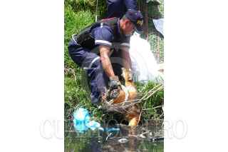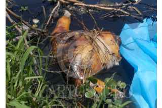 ECATEPEC, ESTADO DE MÉXICO, 29JUNIO2009.- Fue encontrado un tórax y una pierna flotando en las aguas negras del canal de "La Draga" ubicado entre avenida central y la avenida R1 en la colonia Polígonos. Al lugar acudieron elementos de la procuraduria mexiquense para realizar el peritaje del hallazgo. FOTO: LUIS CARBAYO/CUARTOSCURO.COM