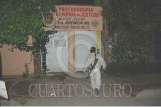 ACAPULCO, GUERRERO 29JUNIO2009.- Esta noche ,sujetos desconocidos dispararon con rifles AK-47 (cuernos de chivo) y AR-17 contra la coordinación operativa de la Policía Ministerial en Acapulco, donde se encuentran las oficinas del Ministerio Publico de la zona residencial de Costa Azul, donde resultaron dos agentes lesionados que fueron trasladados a un hospital de este puerto FOTO: MARINO D. VALDEZ/CUARTOSCURO.COM