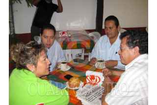 CHILPANCINGO, GUERRERO, 30JUNIO2009.- La candidata del PRI a diputada federal por el sexto distrito Alicia Zamora Villalva acompañada de Hector Apreza Patron, el diputado local y coordinador de la fraccion parlamentaria del PRI en el Congreso local, Hector Vicario Castrejon, y el diputado local del PRI, Jorge Salgado Parra, en centrico restaurante al termino de una conferencia de prensa. FOTO: OSCAR ALVARADO/CUARTOSCURO.COM
