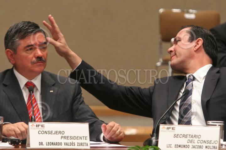 MÉXICO, D.F., 02JULIO2009.-Los consejeros de IFE Marco Antonio Baños y Alfredo Figueroa Fernandez, durante la sesion ordinario del día de hoy. FOTO: RICARDO CASTELAN/CUARTOSCURO.COM