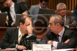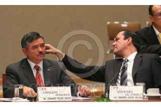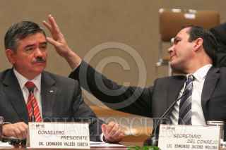 MÉXICO, D.F., 02JULIO2009.-Los consejeros de IFE Marco Antonio Baños y Alfredo Figueroa Fernandez, durante la sesion ordinario del día de hoy. FOTO: RICARDO CASTELAN/CUARTOSCURO.COM