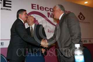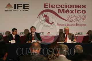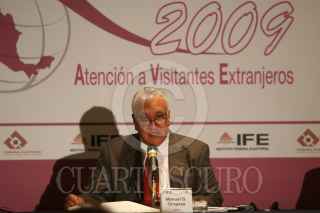 MÉXICO, D.F., 02JULIO2009.- El presidente consejero del IFE Leonardo Valdez, y Manuel G Oropeza del Tribunal Electoral del Poder Judicial de la Federación durante el Foro Elecciones México "Atención a visitantes extranjeros " que se realizo en un hotel de la ciudad de México. FOTO: RICARDO CASTELAN/CUARTOSCURO.COM