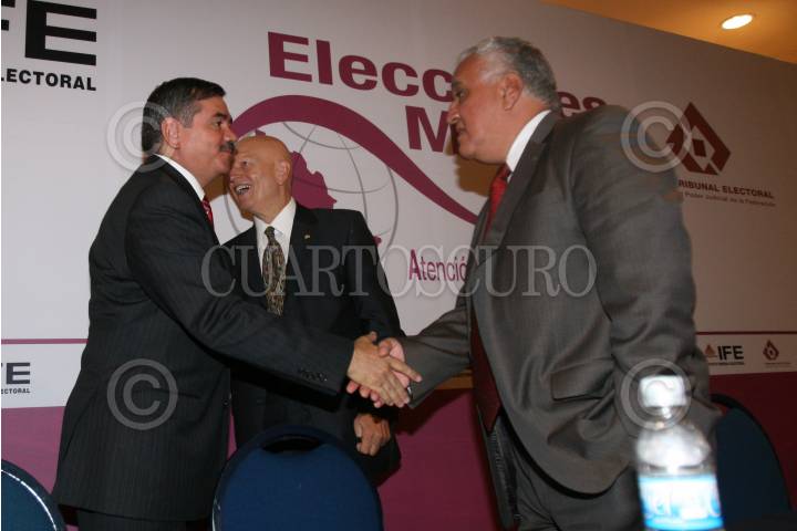 MÉXICO, D.F., 02JULIO2009.- El presidente consejero del IFE Leonardo Valdez, y Manuel G Oropeza del Tribunal Electoral del Poder Judicial de la Federación durante el Foro Elecciones México "Atención a visitantes extranjeros " que se realizo en un hotel de la ciudad de México. FOTO: RICARDO CASTELAN/CUARTOSCURO.COM