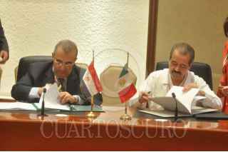 CANCÚN, QUINTANA ROO, 03JULIO2009.- José Angel Cordova Villalobos, Secretario de Salud, sostuvo una reunión con el Ministro de Salud de Egipto, Hetem Mostafa, donde firmaron un acuerdo de colaboración en cuestión de investigación entre ambos países. Esto, durante la reunión de alto nivel; "Lecciones Aprendidas de la Influenza A-H1N1". FOTO: EDUARDO MORALES/CUARTOSCURO.COM