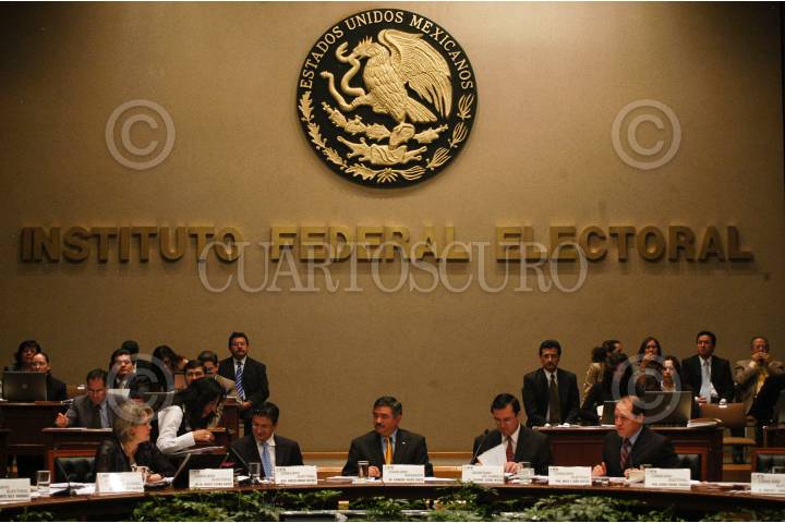 MÉXICO, D.F., 03JULIO2009.- Marco Antonio Godinez, consejero del IFE, presentó durante la sesión extraordinaria, una nota períodística del diario Reforma, donde se muestra la falsificación título de doctor PRD lo postula. FOTO: IVAN MENDEZ/CUARTOSCURO.COM