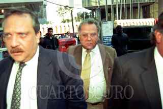 Abogados de Miguel Nazar Haro, ex jefe de la Dirección Federal de Seguridad (DFS), y su hijo José Luis Nazar Dam (al centro), ingresan a la Fiscalía Especial para delitos del Pasado donde compareció el extitular de la DFS. FOTO: Juan Pablo Zamora/CUARTOSCURO.COM
