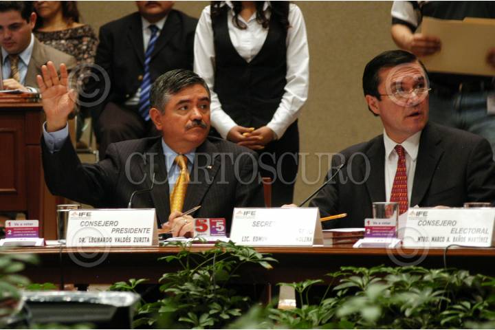 MÉXICO, D.F., 03JULIO2009.- Marco Antonio Godinez, consejero del IFE, presentó durante la sesión extraordinaria, una nota períodística del diario Reforma, donde se muestra la falsificación título de doctor PRD lo postula. FOTO: IVAN MENDEZ/CUARTOSCURO.COM