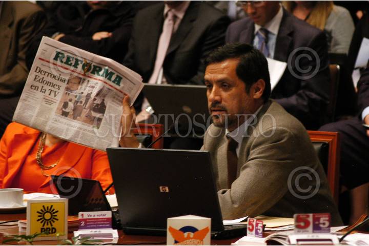 MÉXICO, D.F., 03JULIO2009.- Marco Antonio Godinez, consejero del IFE, presentó durante la sesión extraordinaria, una nota períodística del diario Reforma, donde se muestra la falsificación título de doctor PRD lo postula. FOTO: IVAN MENDEZ/CUARTOSCURO.COM