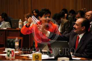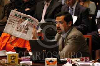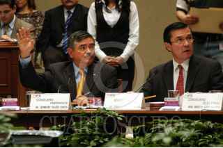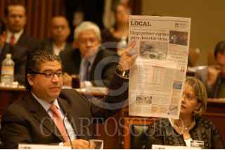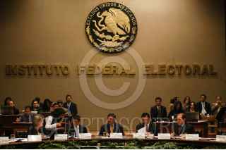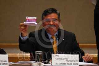 MÉXICO, D.F., 03JULIO2009.- Marco Antonio Godinez, consejero del IFE, presentó durante la sesión extraordinaria, una nota períodística del diario Reforma, donde se muestra la falsificación título de doctor PRD lo postula. FOTO: IVAN MENDEZ/CUARTOSCURO.COM