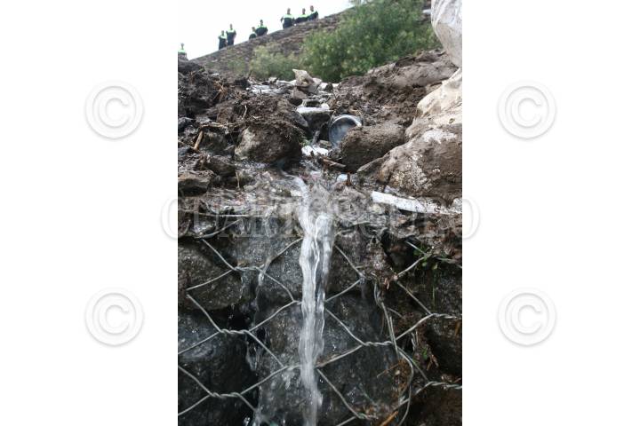 VALLE DE CHALCO, ESTADO DE MÉXICO 03JULIO2009.- Centenares de vecinos, policías estatales, municipales, personal de protección civil y del ejercito mexicano, acudieron a colocar costales de arena al canal de la compañía, debido a que las constantes lluvias han agrietado dicho canal de aguas negras que se encuentran a su máxima capacidad. FOTO: SAÚL LÓPEZ/CUARTOSCURO.COM