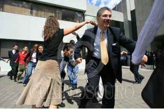 MÉXICO D.F.03JULIO2009.- El consejero Arturo Sanchez, baila a las afueras del instituto con promotores del voto esto al termino de la Sesión Ordinaria del Instituto Federal Electoral IFE. FOTO: GUILLERMO PEREA/CUARTOSCURO.COM