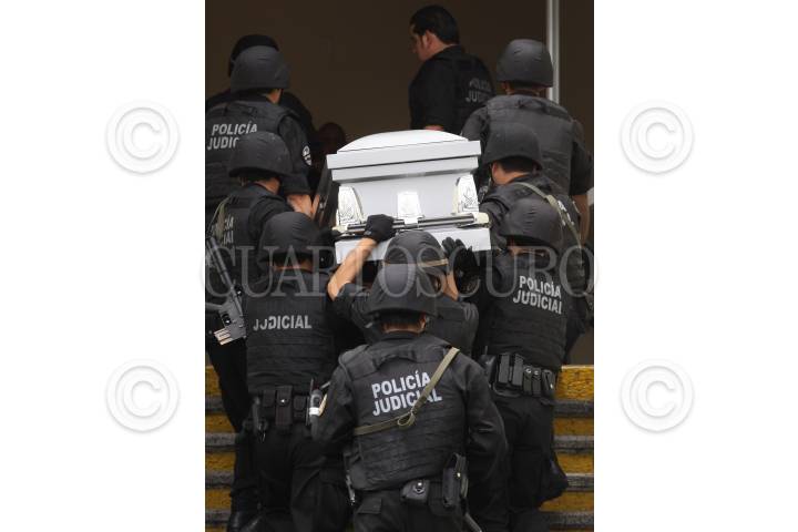 MÉXICO, D.F., 04JULIO2009.- Una de las hijas del comandante José Antonio Moreno Sánchez, sostiene la bandera que le fue entregada a su madre por parte del Jefe de Gobierno, durante el homenaje que les brindó la procuraduría capitalina. Ayer su padre murió rescatando a una mujer que estaba secuestrada desde el pasado miércoles. FOTO: MOISÉS PABLO/ CUARTOSCURO.COM