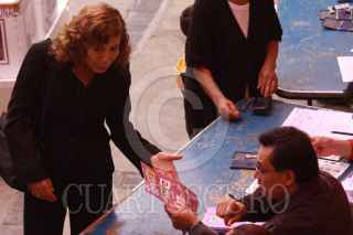 MÉXICO, D.F., 05JULIO2009.-La candidata del Partido de la revolución Democrática (PRD) a jefa delegacional, Silvia Oliva, acudió a la casilla 2235, ubicada en la colonia Santa María Aztahuacán donde emitio su voto FOTO:SÁSHENKA GUTIÉRREZ/CUARTOSCURO.COM