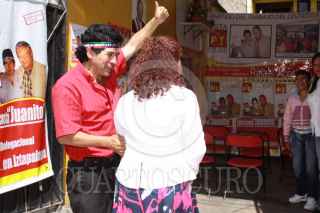 MÉXICO, D.F., 05JULIO2009.- El candidato para jefe delegacionalpor el PT Rafael Acosta " Juanito" acompañado por Clara Brugada a la llegada a la casa de campaña del canditado para jede delegacional FOTO:SÁSHENKA GUTIÉRREZ/CUARTOSCURO.COM