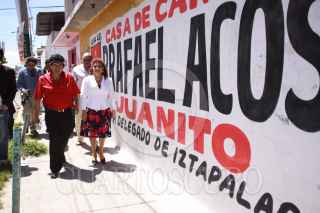 MÉXICO, D.F., 05JULIO2009.-El candidato para jefe delegacionalpor el PT Rafael Acosta " Juanito" acompañado por Clara Brugada rumbo a la casilla donde el candidato de Iztapala emitio su voto FOTO:SÁSHENKA GUTIÉRREZ/CUARTOSCURO.COM