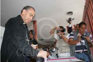 SAN LUIS POTOSÍ, SAN LUIS POTOSÍ, 05JULIO2009.- Luis Morales Reyes, Obispo de San Luis Potosí, emite su voto en una de las casillas ubicadas en gran parte del territorio potosíno. FOTO: RICARDO CASTELAN/CUARTOSCURO.COM