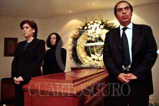 Sara Bermudez, titular del Consejo Nacional para la Cultura y las Artes, Barbara Jacobs, esposa de Monterroso, y Saúl Juárez., director del INBA, montan guardía al fertro el escritor Augusto Monterroso, quien falleció anoche a la edad de 81 años, víctima de un paro cardiaco. FOTO: Juan Pablo Zamora/CUARTOSCURO.COM