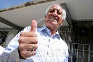 SAN LUIS POTOSI, SAN LUIS POTOSI, 05JULIO2009.- Marcelo de los Santos, gobernador del estado, emitió su voto en la casilla de su localidad aproximadamente a las 12 del día, el mandatario afirmo que aun no se registra ninguna irregularidad en estas elecciones. FOTO: RICARDO CASTELAN/CUARTOSCURO.COM