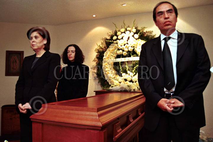 Sara Bermudez, titular del Consejo Nacional para la Cultura y las Artes, Barbara Jacobs, esposa de Monterroso, y Saúl Juárez., director del INBA, montan guardía al fertro el escritor Augusto Monterroso, quien falleció anoche a la edad de 81 años, víctima de un paro cardiaco. FOTO: Juan Pablo Zamora/CUARTOSCURO.COM