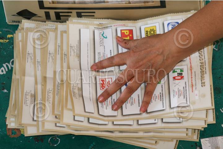 MEXICO, D.F., 05JULIO2009.- Una vez terminado el proceso de elección de los futuros servidores públicos, los representantes de una casilla en la delegación Iztapalapa se dan a la tarea de contar los votos de los ciudadanos, representantes de los partidos participantes en la contienda vigilan que la elección sea limpia. FOTO: HERMES QUETZALCOATL/CUARTOSCURO.COM