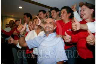 PUEBLA, PUEBLA, 05JULIO2009.- José Luis Sánchez Solá “El Chelis”, festejo con los candidatos priistas poblanos esta noche, luego la información difundida por varias encuestadoras el tricolor aventaja en las preferencia electorales a nivel nacional. FOTO: FRANCO/CUARTOSCURO.COM