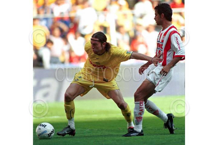 Aguilas del América derrotó 2-0 a Rayos de Necaxa, en partido jugado en el Estadio Azteca, por la fecha cinco del Campeonato Clausura 2003 del futbol mexicano. Tras esta victoria, América llegó a siete unidades dentro del Grupo Uno, mientras Necaxa se quedó con nueve en el Tres, ligando su segunda derrota. FOTO: Pedro Mera/CUARTOSCURO.COM