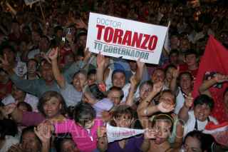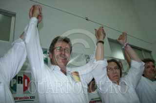 SAN LUIS POTOSÍ, SAN LUIS POTOSÍ, 05JULIO2009.- El candidato del PRI a gobernador en la entidad, Fernando Toranzo, Festejo su posible triunfo en estos comicios con un 20 % de votos a su favor. FOTO: RICARDO CASTELAN/CUARTOSCURO.COM