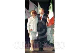 Francisco Labastida y su esposa María Teresa Uriarte durante la presentación del proyecto de nación del priísta en el Auditorio Nacional.