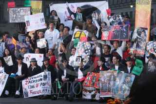 MÉXICO, D.F., 07JULIO2009.- Algunos fans del Michael Jackson, se reunieron en el Zócalo Capitalino, convocados por una televisora, estos fans ofrecieron un pequeño homenaje el Rey de POP. FOTO: RICARDO CASTELAN/CUARTOSCURO.COM