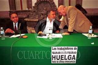Trabajadores en huelga del periódico Uno más Uno, organizaron el Primer Encuentro Nacional de Periodísmo "2003: Crísis de la Prensa en México", naugurado por Alejandro Encinas, en representación del jefe de gobierno de la ciudad, Andrés Manuel López Obrador. FOTO: Pedro Mera/CUARTOSCURO.COM