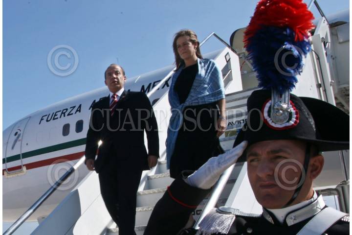 L´AQUILA, LOS ABRUZOS, ITALIA, 08JULIO2009.- Felipe Calderón Hinojosa, presidente de México, durante una reunión que sostuvo con Jacob Zuma, presidente de la República de Sudafrica, esto en el marco de la reunión bilateral del G-5 y que tuvo lugar en la escuela de Suboficiales de la Guardia de Finanzas. FOTO: ALFREDO GUERRERO/CUARTOSCURO.COM