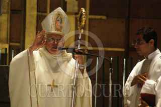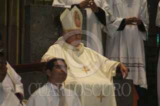 MÉXICO, D.F., 08JULIO2009.- El Obispo de la diócesis de Saltillo, Raúl Vera, en el marco de la peregrinación de la feligresía de su diócesis al Templo Mariano de esta ciudad, ofició una misa en la Basílica de Guadalupe. En su homilía criticó la violencia contra las mujeres, habló de la pobreza y de la forma en la que los empresarios se hacen ricos. Espetó además que lamentaba la gran cantidad de muertos en esta "guerra perdida", contra el crimen organizado, según dijo. FOTO: FRANCISCO VILLEDA/CUARTOSCURO.COM
